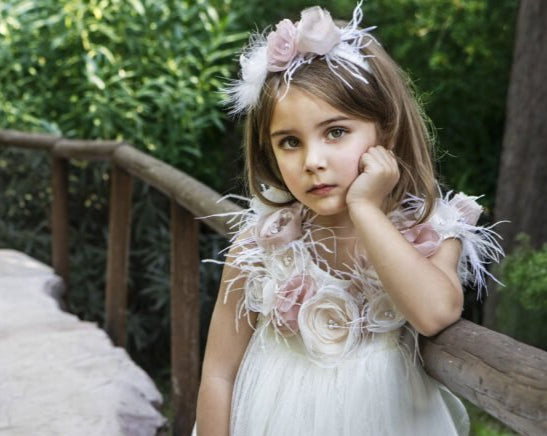 Ρομαντικό φόρεμα Βάπτισης Baby Bloom απο τη συλλογή Printemps 2023, σε ιβουάρ απόχρωση. Το κύριο χαρακτηριστικό του είναι τα χειροποίητα λουλούδια σε αποχρώσεις dusty pink και σομόν, που στολίζουν το μπούστο, τους ώμους και την πλάτη του φορέματος. Η φούστα από τούλι και μαλακή δαντέλα στο εσωτερικό της, του δίνουν αέρινη κίνηση και ρομαντισμό. Ασορτί κορδέλα με το ίδιο λουλούδι του φορέματος κατ’ επιλογή μπαντάνα ή τουρμπάνι.